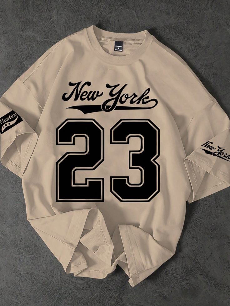 Men Numeric Print Short Sleeve T-Shirt And Drawstring Waist